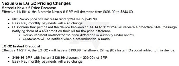 This information comes from a leaked Sprint document which you can see in the image above. Also from that screenshot we find out that the no-contract price for the Nexus 6 has changed too, now being $648 (down from $696), and as a consequence the Easy Pay monthly payments will also change.